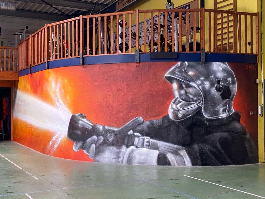 Et ces fresques à lui non plus de secret pour la Gâtine, l’artiste grapheur Rebeb était à la baguette avec les jeunes pour monter cette fresque. L’artiste est habitué de travailler avec des jeunes publics, moins de travailler à l’intérieur d’une caserne de pompier, une première pour lui.