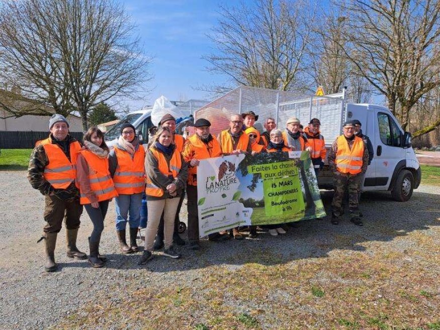 Vingt-six communes des Deux-Sèvres ont participé à l'opération "J'aime la Nature Propre", organisée par la Fédération Nationale des Chasseurs et avec le soutien financier de l'Office Français de la Biodiversité. À Champdeniers, près de Mazières-en-Gâtine, on a nettoyé la nature, ce samedi 15 mars.