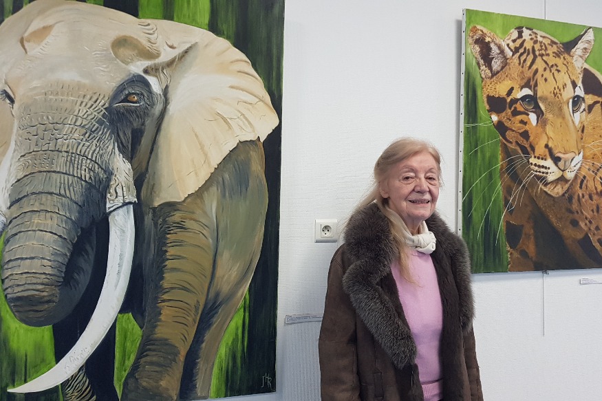Tigres, éléphants, orangs-outans, hippopotames, ours blanc, panthères nébuleuses, tous ces animaux ont un point commun, ils sont menacés d’extinction. Très sensible à la cause animale, Josette Rosemberck a peint une cinquantaine de toiles pour parler de ces espèces, dans une exposition appelée « La sixième extinction ». Depuis maintenant deux semaines, 21 de ces toiles sont visibles au hall’expo de Coulonges-sur-l’Autize. Rencontre avec la pétillante Josette Rosemberck.