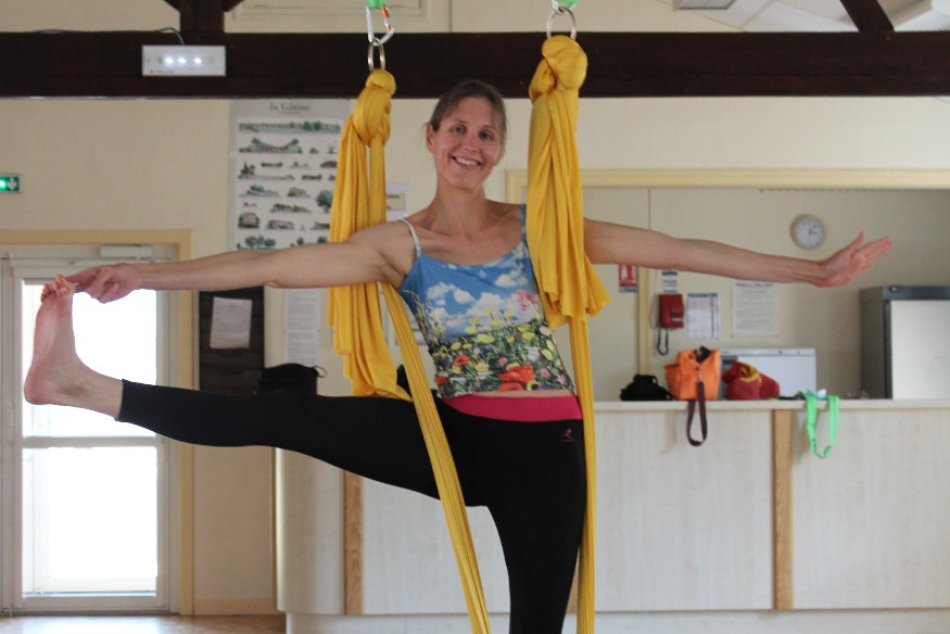 Juliette Oehy vous attend pour vivre cette expérience de yoga aérien à Saint-Martin-du-Fouilloux, salle communale, le mardi et vendredi de 18h30 à 19h30 et de 20h à 21h, et......