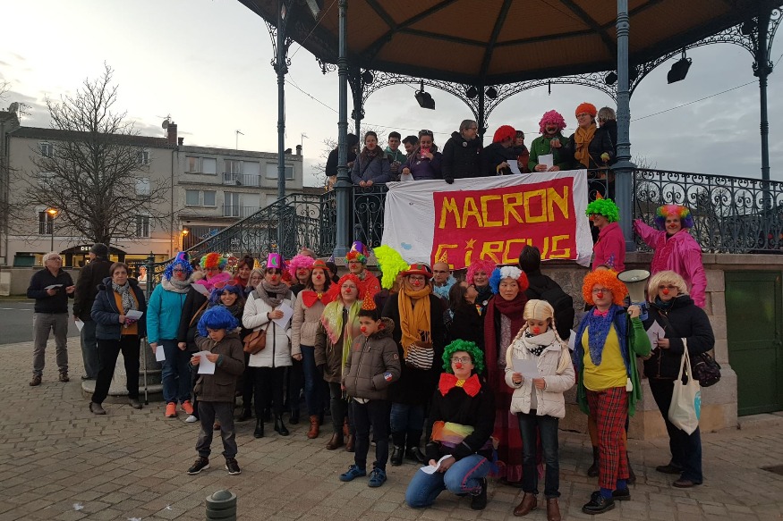 Après une mobilisation sous forme de marche funèbre le 16 janvier dernier, c’est en mode « Macron Circus » qu’une cinquantaine d’enseignants s’est retrouvé vendredi, en fin de journée, au kiosque de la place du Drapeau. Une protestation inter-établissements, alors que le projet de réforme des retraites était présenté vendredi au Conseil des ministres. Dans le cortège, on a retrouvé des enseignants de Parthenay, Saint-Aubin-le-Cloud, voir même de Bressuire, exerçant en primaires, collèges et lycées. Ambiance sur place avec......