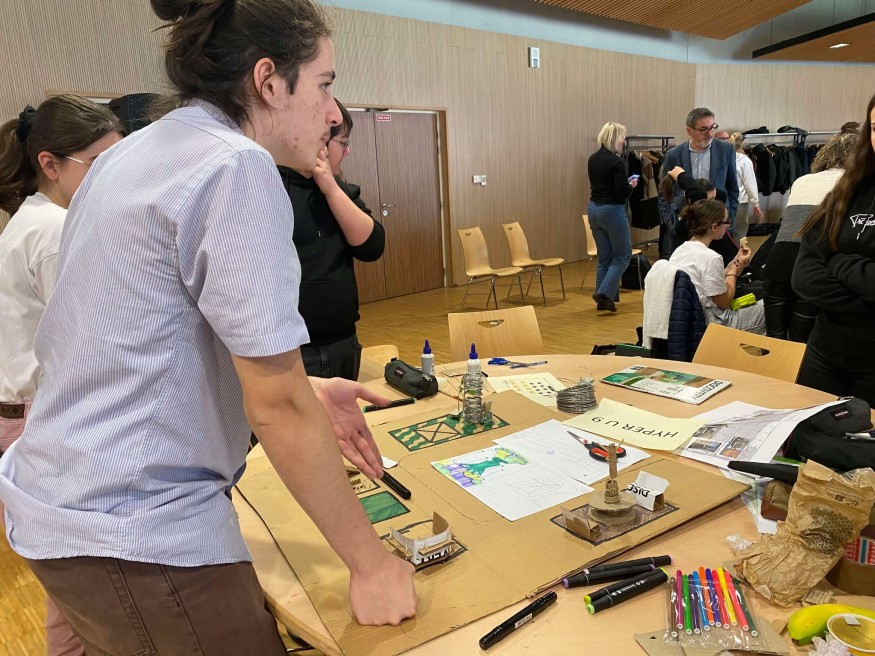 Le domaine des Loges à Parthenay était bien rempli hier. Avec 124 élèves issus des lycées Pérochon et des Grippeaux, ainsi que des collèges de Gâtine ont participé à l’événement « J’innove en vrai ». Cette journée visait à offrir aux élèves de l’expérience en plus de leur enseignement théorique, mais aussi de rapprocher les entrepreneurs du territoire. Le tout, en un défi : refaire la galerie marchande d’Hyper U à Parthenay en maquette et proposer le projet. C’est la troisième édition sous cette forme de l’événement.