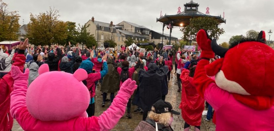 Météo France l’avait pourtant annoncé depuis plusieurs jours déjà. Comme la veille, ce dimanche3 octobre, aurait du être sous le signe de la pluie. Mais ce n’est pas sans compter la formidable motivation de l’équipe de bénévoles autours des Filles de Parthenay, qui sous un temps des plus chaotiques, a pu installer cette 9eme édition de La Parthenaisienne. La récompense est arrivée vers 9h, quand plus de 1 000 personnes se sont retrouvés sur la place du Drapeau, à Parthenay pour marcher et soutenir la lutte contre le cancer du sein. Cerise sur le gâteau, il n’a pas plu pendant toute la durée de la manifestation. Biland à chaud, en compagnie de Christine Rossard la présidente de l’association, Les filles de Parthenay.