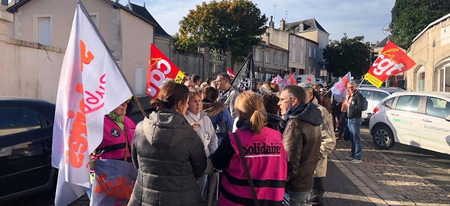 Vendredi 18 octobre, 9 h 30, environ 80 personnes, agents et élus, se sont rassemblés devant le centre des finances publiques de Parthenay. À l'appel des organisations syndicales du département, ils sont venus dénoncer le plan de restructuration, qui prévoit la fermeture de trois des quatre services, dans le cadre du projet de nouveau réseau de proximité des finances publiques, via le plan du ministre Darmanin. Cette action permettait de mesurer l’impact de la réforme sur le site parthenaisien, qui emploie 42 agents et regroupe quatre services (impôts des entreprises, impôts aux particuliers, trésorerie de Parthenay-Gâtine et trésorerie hospitalière Nord-Deux-Sèvres). La manifestation s'est déplacée à la sous-préfecture en fin de matinée. La sous-préfète de l'arrondissement de Parthenay, a d'ailleurs reçu une délégation pour entendre leur revendication. Ecoutez David Rochais, délégué CGT finance public des Deux-Sèvres.