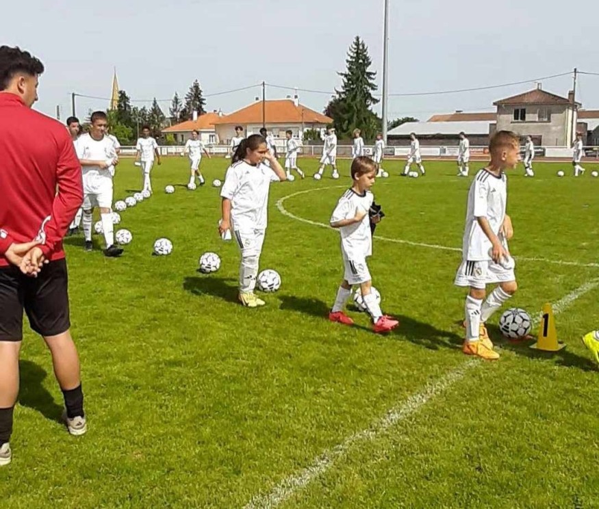 L'hymne du Real a résonné toute la semaine au stade de foot de Parthenay. Des banderoles aux maillots des joueurs, nous étions à Barnabéu. Pour s’immerger, les 67 jeunes en stage se réunissaient au moins deux fois par jour au centre du stade, en cercle... Ça a marqué Laly, 10 ans, une passionnée de foot depuis qu’elle a 5 ans : "On forme un cercle avec les ballons. Il faut bien positionner nos gourdes. On doit marcher, puis former une étoile avant de sortir du terrain en courant, sous les applaudissements des coachs." Un rituel "carré" à l’image de ce stage 100% foot, nous dit Paul, 14 ans.