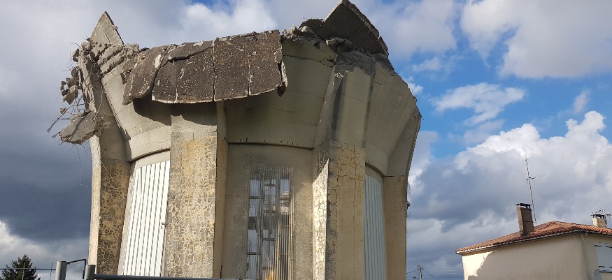 Inutilisé depuis 2018, le château d’eau de Brisset à Parthenay est en train d’être démoli par le Syndicat mixte des eaux de Gâtine (le SMEG). En chiffres, il s’agit d’un édifice de 20 mètres de haut, de 14 mètres de diamètre, une cuve de 1 500 m3, 200 tonnes de béton à évacuer, et un budget de près de 64 000 euros pour les travaux. Ces derniers ont démarré par le désamiantage des plaques au sol, et la démolition en tant que tel a débuté le mercredi 24 mars dernier. Philippe Albert, le président du SMEG, nous détaille le contexte de ce chantier.
